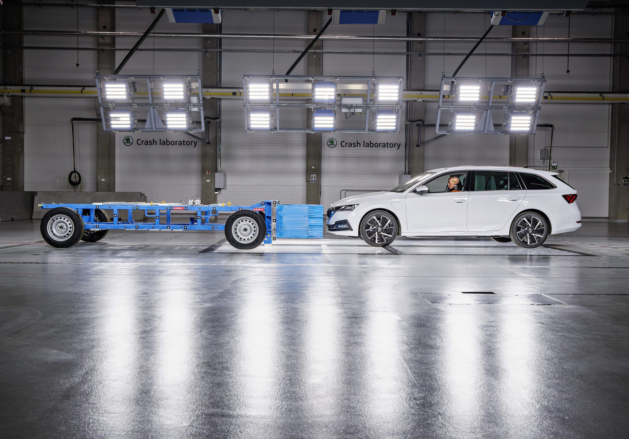 Chiếc Octavia iV trong phòng thử nghiệm va chạm của Skoda tại Úhelnic